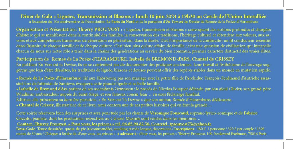 Nous vous espérons nombreux autour d’un verre du lecteur !  à bientôt, Isabelle de Bremond d’Ars
